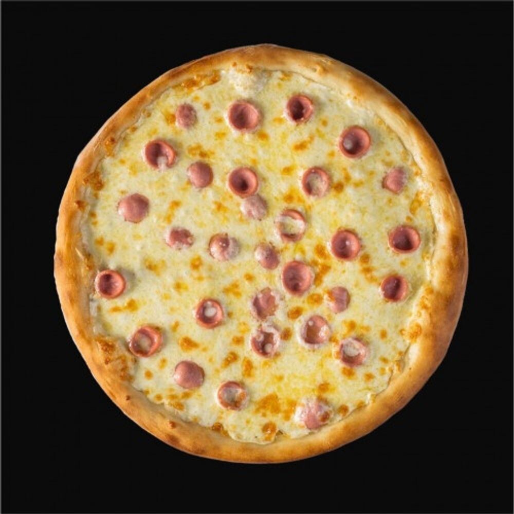 Сосиски молочные, много сыра моцарелла, фирменный красный соус