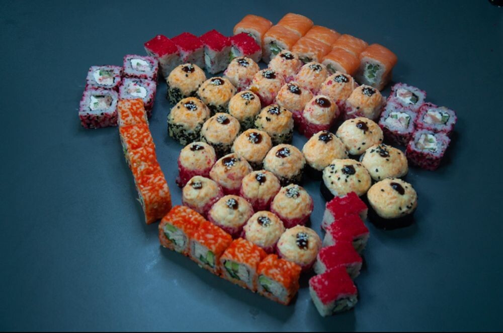 Филадельфия с огурцом,Марокко, Калифорния в масаго , Цезарь ролл, Креветка Хот, Лосось унаги, Сырный, Яки , Окунь запеченный