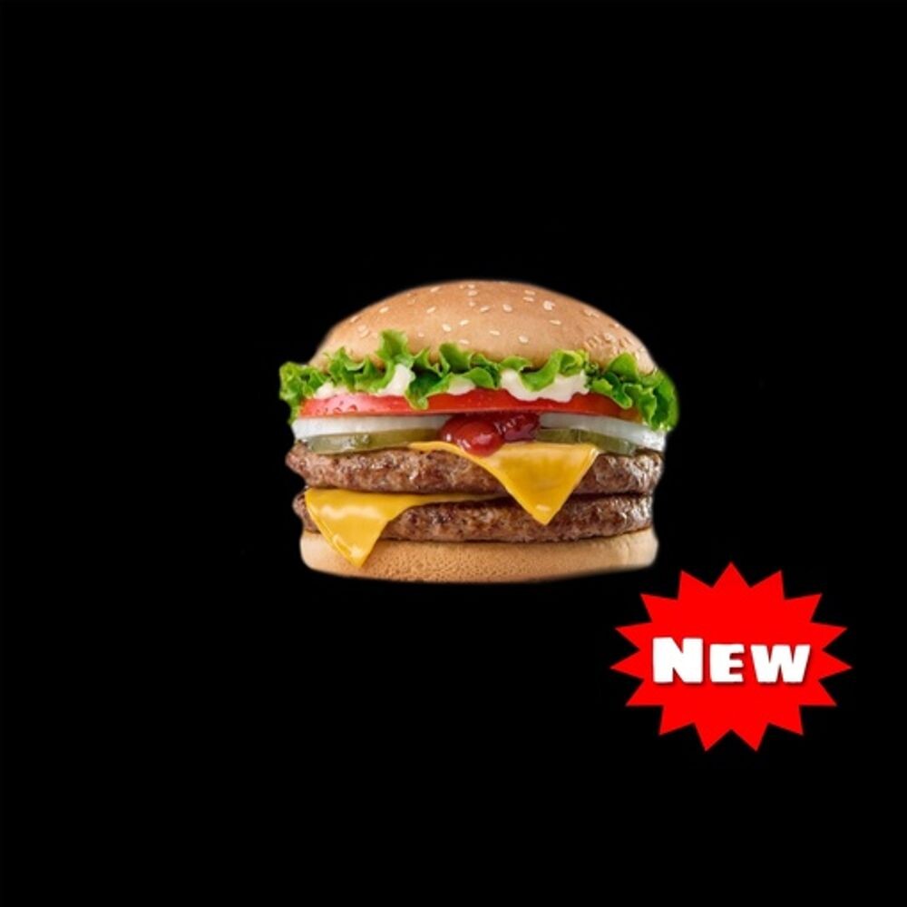 Булка,лист салата, помидор,соленый огурец,маринованный красный лук, сыр чеддер, фирменный соус, говяжья котлета