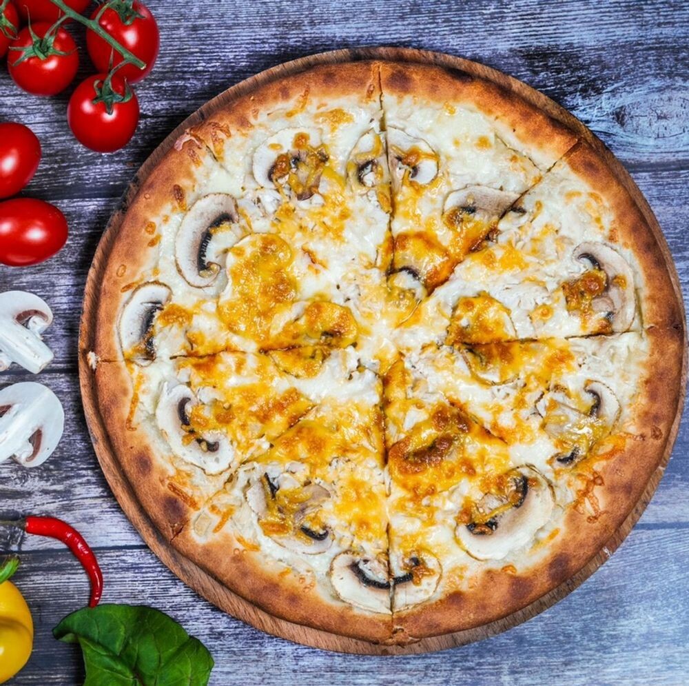 Состав курица , шампиньоны, фирминний соус , лук , мацарелло