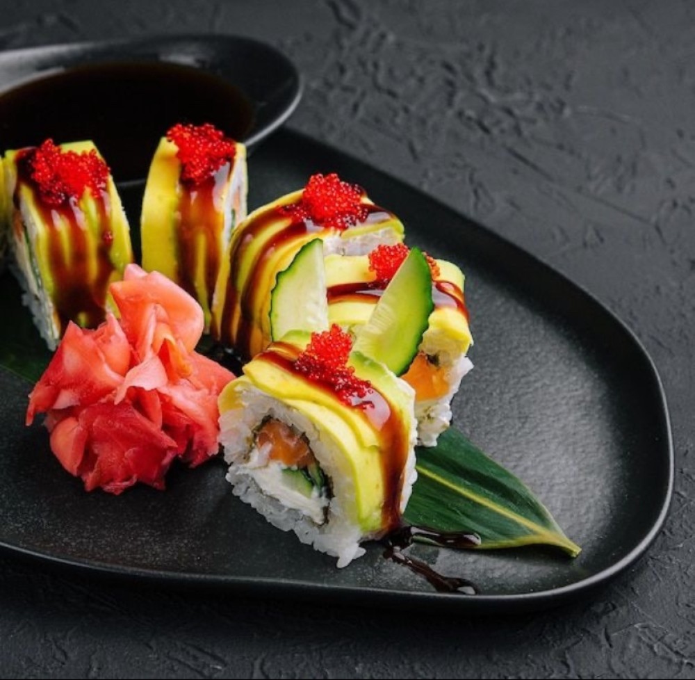Лосось, авокадо,сыр слиыочный, огурец,масаго