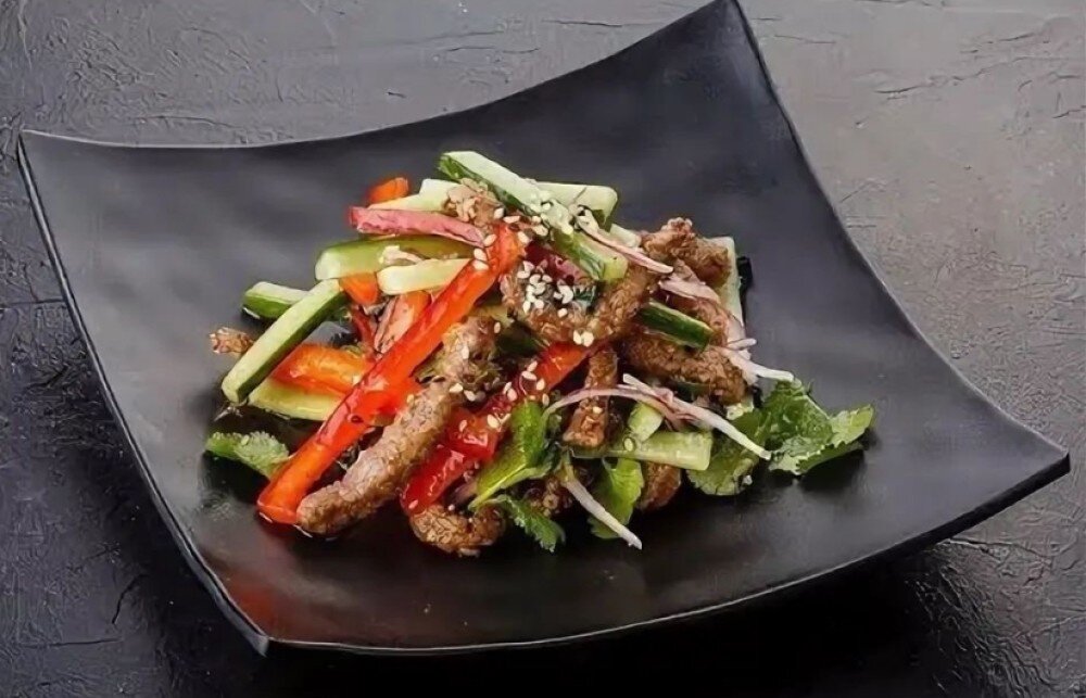 Острый салат с говядиной