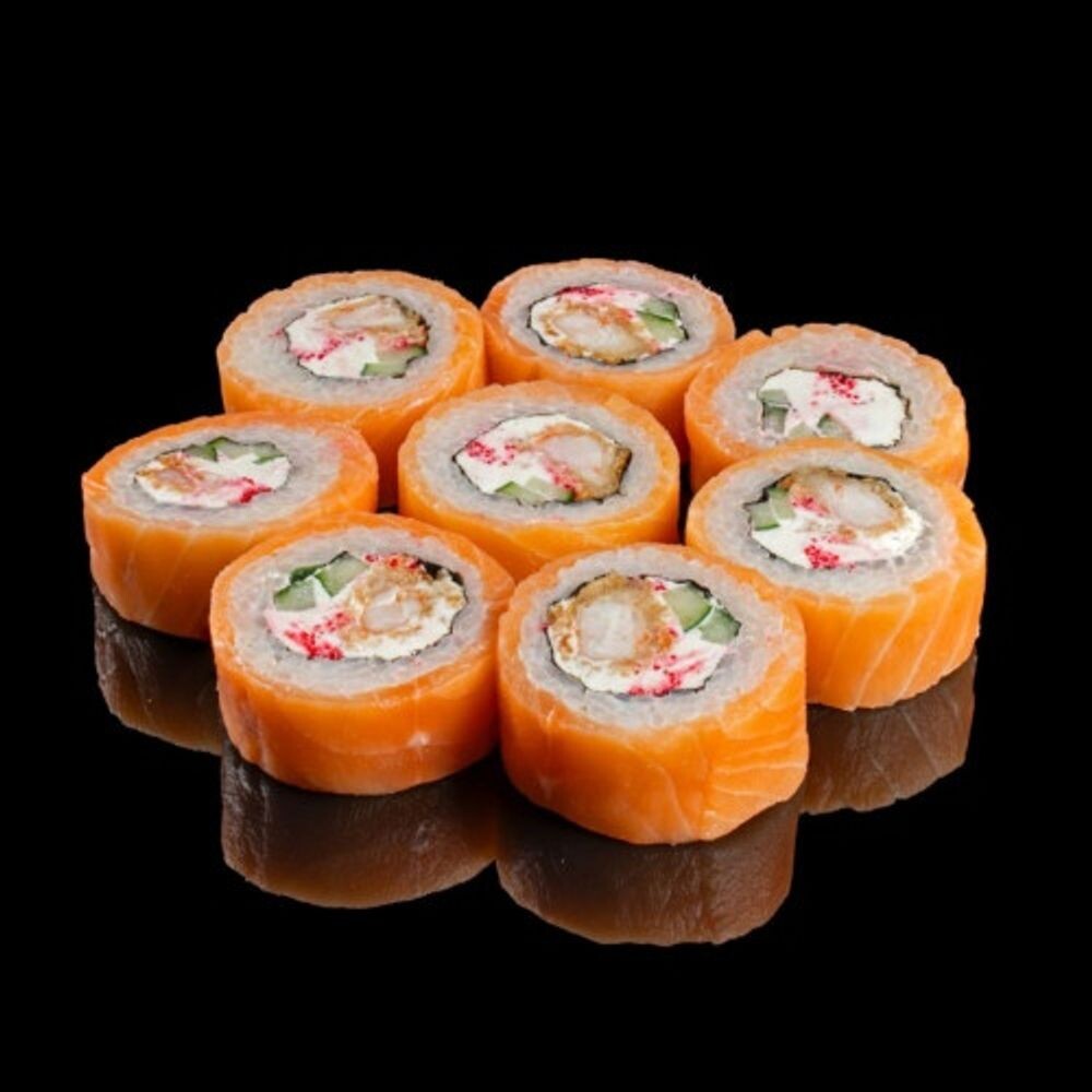 Лосось, креветка в темпуре, огурец, масаго красная, сыр Cremette