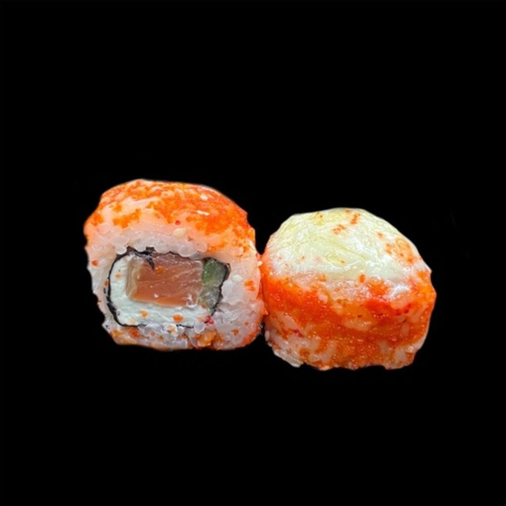 Лосось, сливочный сыр, огурец, масаго, сырный соус